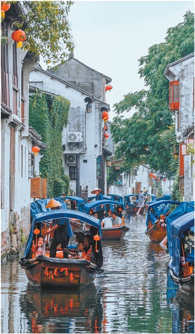江蘇省昆山市周莊古鎮(zhèn),獨(dú)特的水鄉(xiāng)風(fēng)貌和深厚的人文底蘊(yùn)吸引著八方游客。
