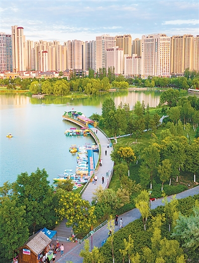 甘肅省蘭州新區(qū)棲霞湖碧波輕漾、垂柳依依,成為市民游客散步休閑的新去處。