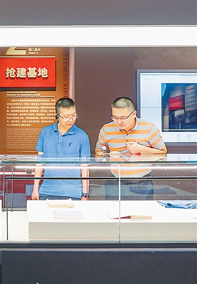 四川省綿陽(yáng)市梓潼縣,游客在四川兩彈城博物館里參觀。