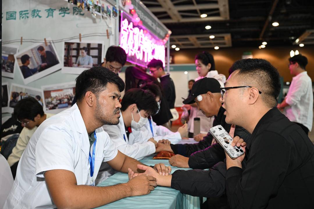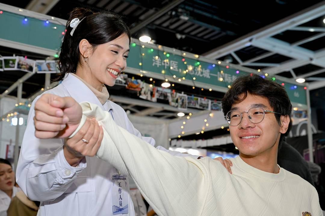 10月16日,遼寧中醫(yī)藥大學(xué)第二屆中醫(yī)藥文化夜市(膏方節(jié))在沈陽(yáng)新世界博覽館拉開(kāi)帷幕。遼寧中醫(yī)藥大學(xué)國(guó)際教育學(xué)院展區(qū)前人潮涌動(dòng),不同膚色、不同國(guó)籍的留學(xué)生為大家獻(xiàn)上舞龍、舞蹈表演,共80余名留學(xué)生和港澳臺(tái)學(xué)生參加此次活動(dòng),更有來(lái)自泰國(guó)、加納、匈牙利等國(guó)家的留學(xué)生作為“洋中醫(yī)”坐診把脈,他們用流利的中文以及專(zhuān)業(yè)的中醫(yī)術(shù)語(yǔ)與市民交流,展現(xiàn)中醫(yī)藥文化的國(guó)際魅力,吸引眾多體驗(yàn)者駐足參與。