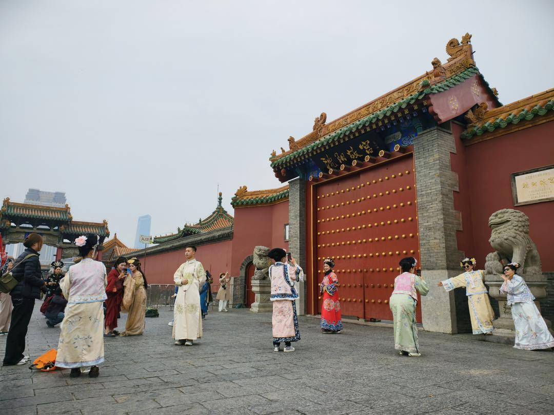 近日,沈陽故宮古風氛圍濃厚,眾多游客身著傳統服飾穿梭于紅墻黃瓦間,以古建筑群為背景拍照留念,成為秋日里景區獨特的風景線 。
